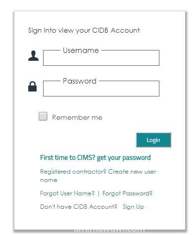 2.Masuk ke dalam sistem CIMS CIDB dengan menggunakan Username dan Password yang telah didaftarkan sebelum ini.