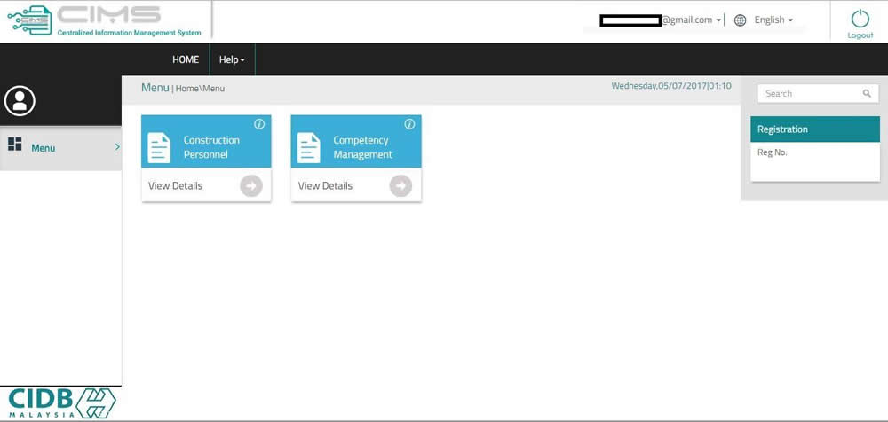 3.Anda akan dibawa ke interface ataupun muka depan sistem CIMS CIDB ini.